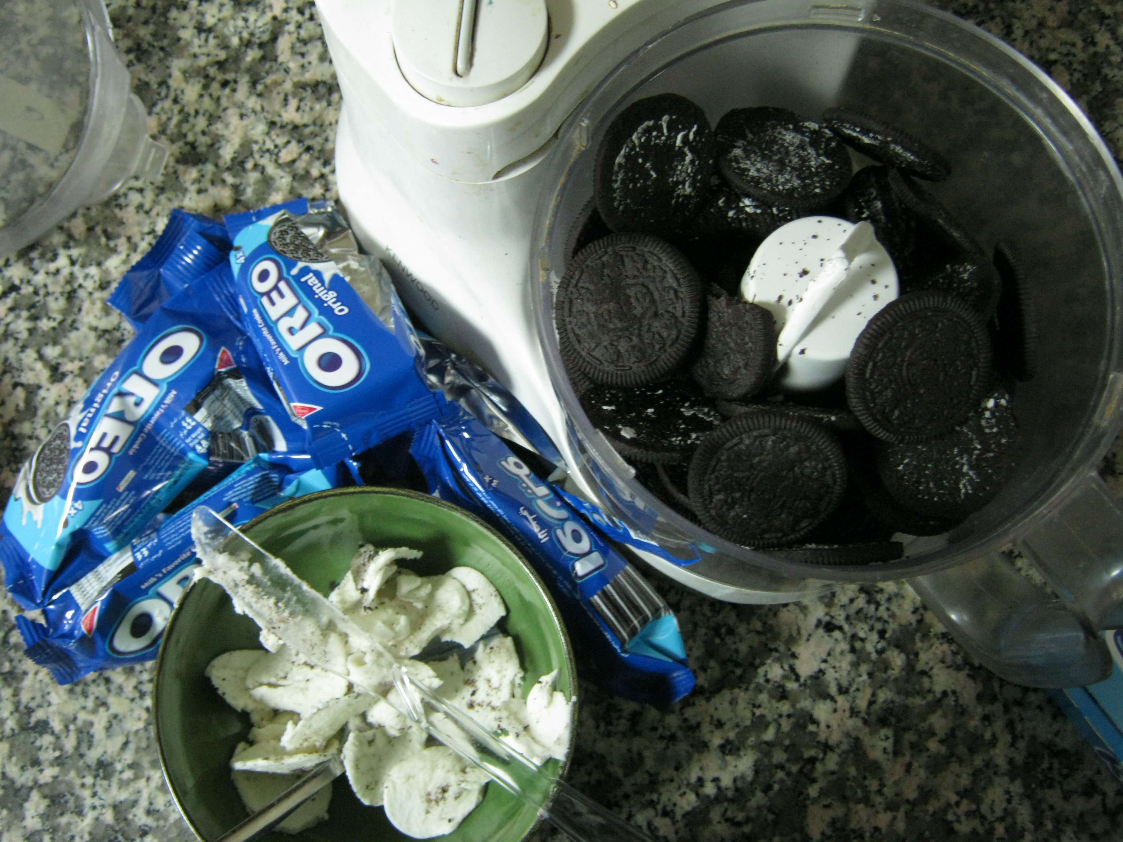 1. Split the Oreo cookies and scrap off the cream inside.IMG_0918